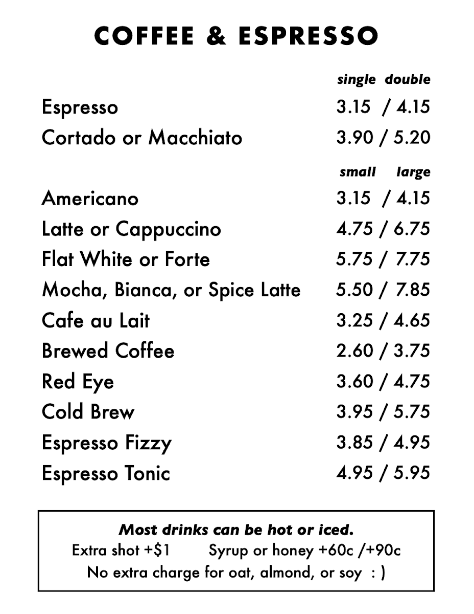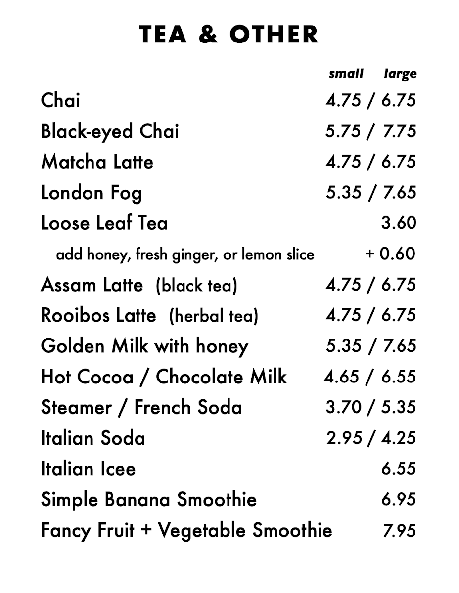 Zoot Coffee in Camden, ME, invites you to explore a thoughtfully crafted menu that caters to both coffee aficionados and casual sippers alike. With prices ranging from US$2.60 for brewed coffee to a cozy US$5.75 for a flat white, their selection is as diverse as it is enticing. Choose from classic offerings like the rich mocha and smooth Americano to innovative options like the refreshing espresso tonic.